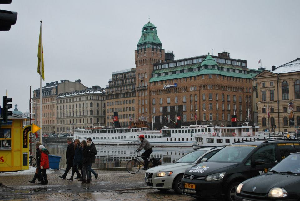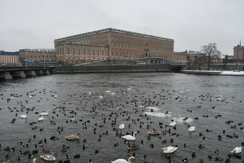 Panorama con, a sinistra, l'isoletta di Skeppsholmen sede del Museo di arte moderna ed il quartiere Sodrmalm sullo sfondo