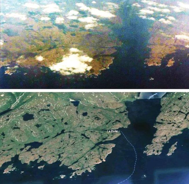 Ho accostato le mie foto a quelle ricavate da Google Earth ed ho individuato l'ultimo tratto della costa sud di Terranova e subito dopo l’estrema punta dell’isola in direzione del Canada.